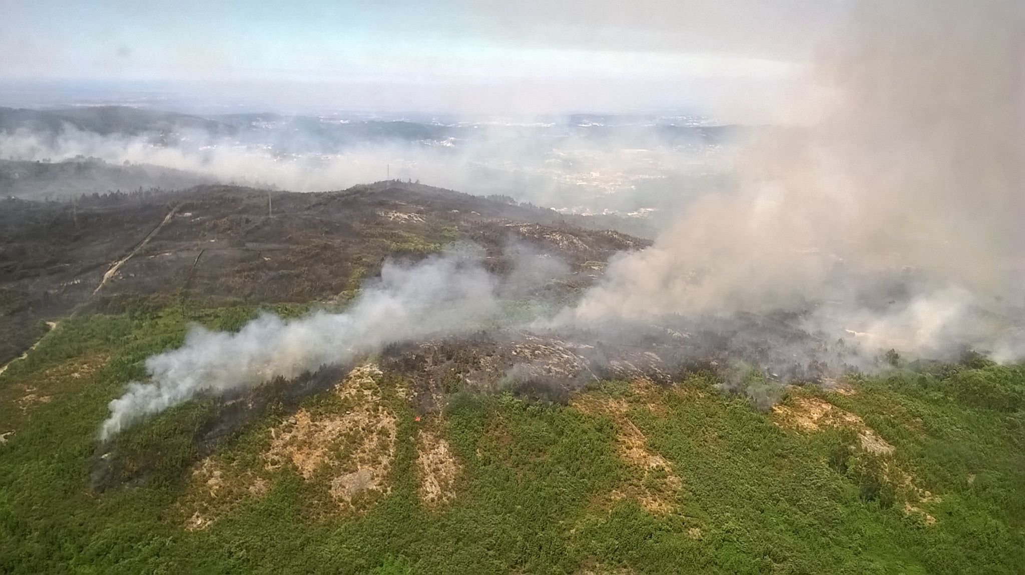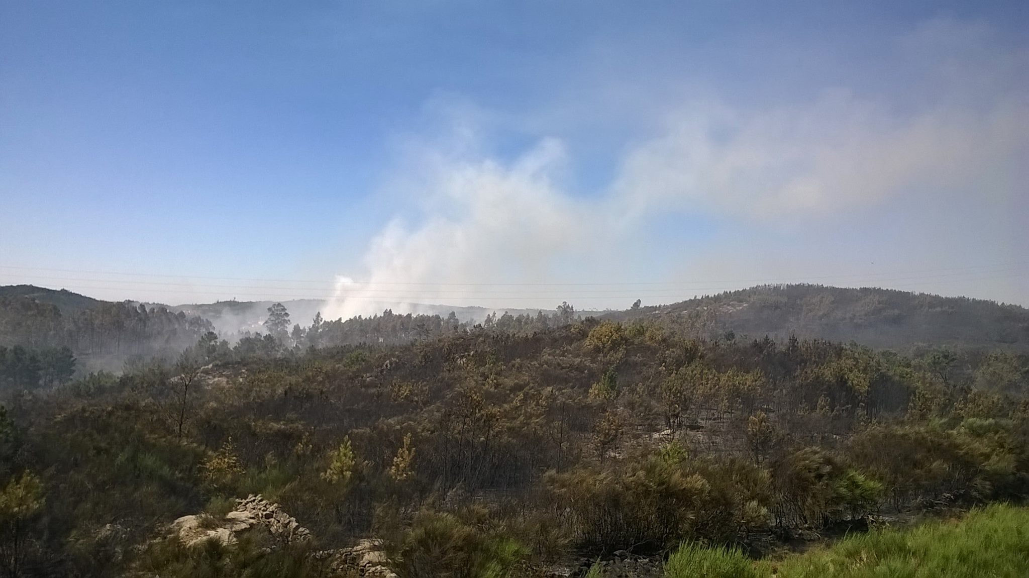 Às 15:00, este era o único incêndio no país com uma duração superior a três horas e mais de 15 meios de proteção e socorro envolvidos.